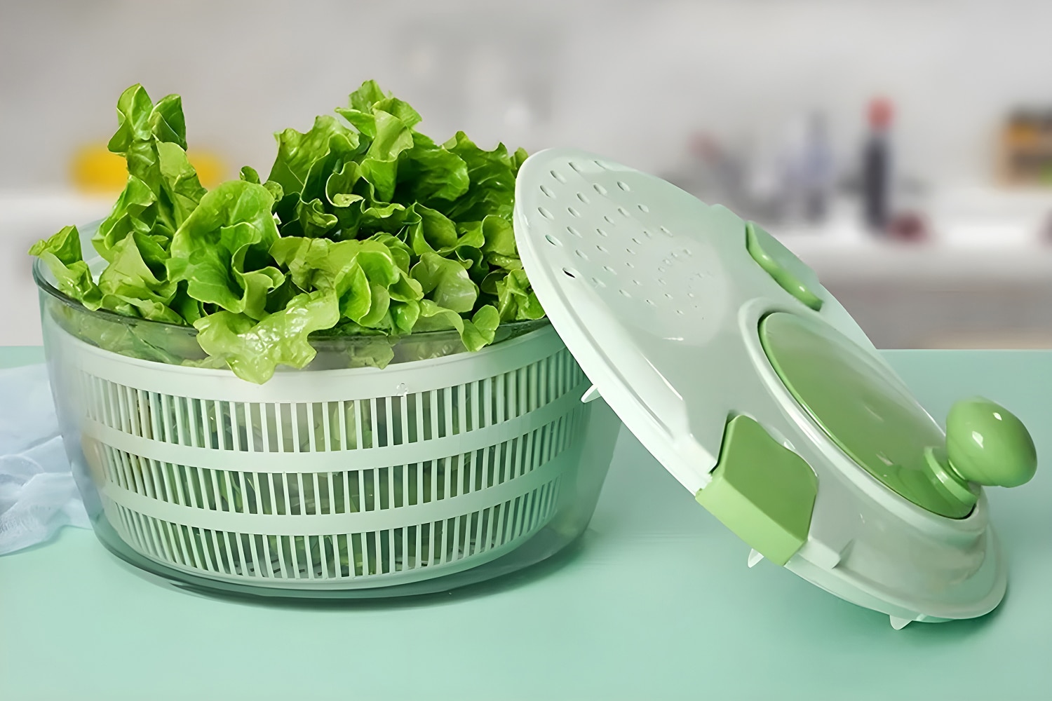 🥗 Qui n'a pas connu la frustration d'une salade détrempée qui dilue toute la vinaigrette et ruine votre repas ? Après avoir passé du temps à laver soigneusement vos légumes, les sécher devient souvent un véritable cauchemar - des feuilles qui collent aux mains, des serviettes en papier gaspillées, et au final, une salade qui baigne dans l'eau.