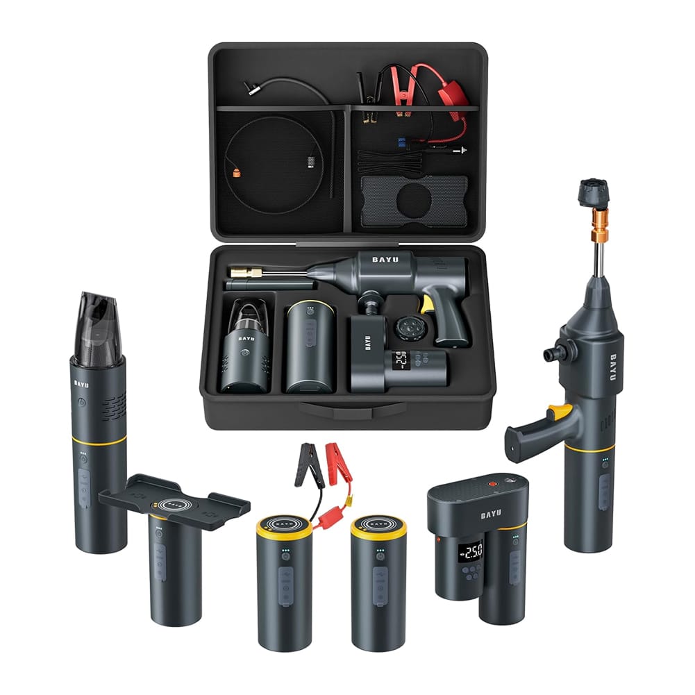 Le BAYU Aspirateur de Voiture est une véritable centrale de fonctionnalités, conçu pour être une solution complète pour les propriétaires de véhicules. Sa multifonctionnalité 7-en-1 le distingue des aspirateurs automobiles traditionnels, offrant non seulement le nettoyage mais aussi des services d'urgence comme le démarrage de batteries déchargées et le gonflage des pneus.